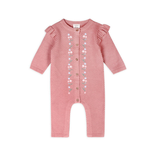 Floral Embroidered Sweater Knit Baby Ruffle Jumpsuit-Organic