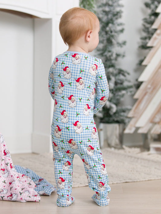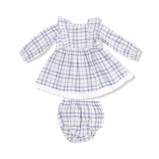 Long Sleeve Dress & Bloomer - Blue Plaid