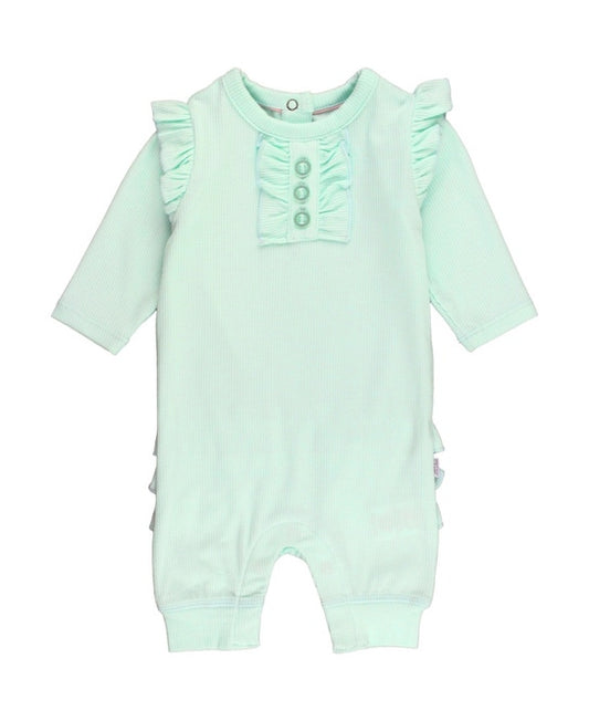 Rib Knit Ruffle Henley Jumpsuit