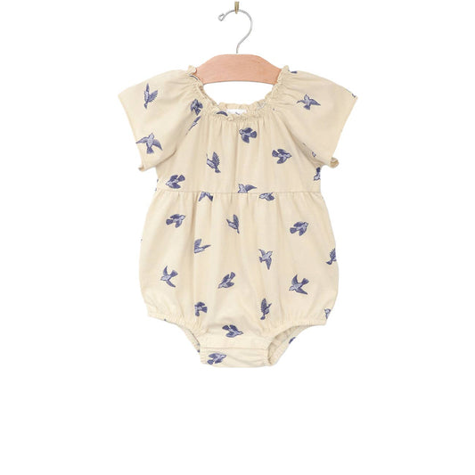 Raglan Flutter Sleeve Romper- Bluebird- Natural