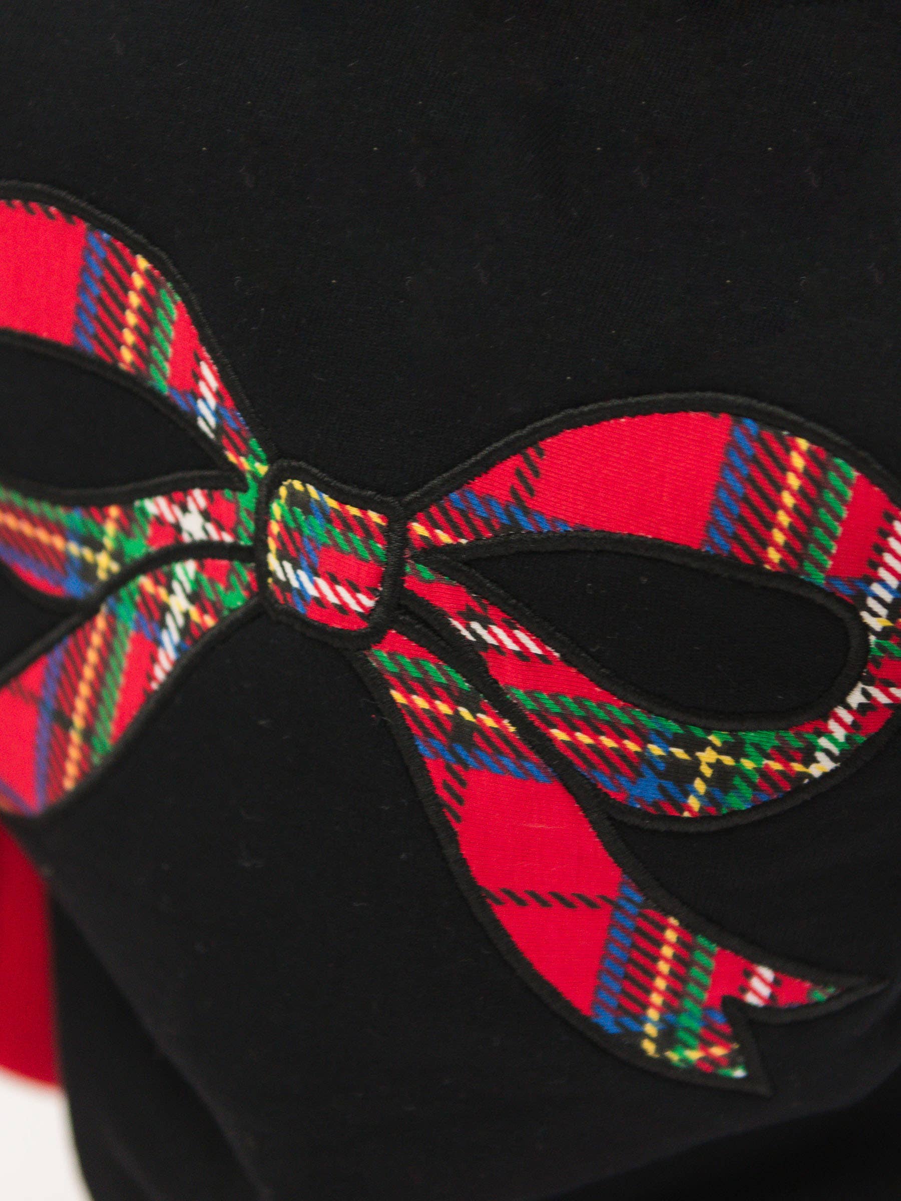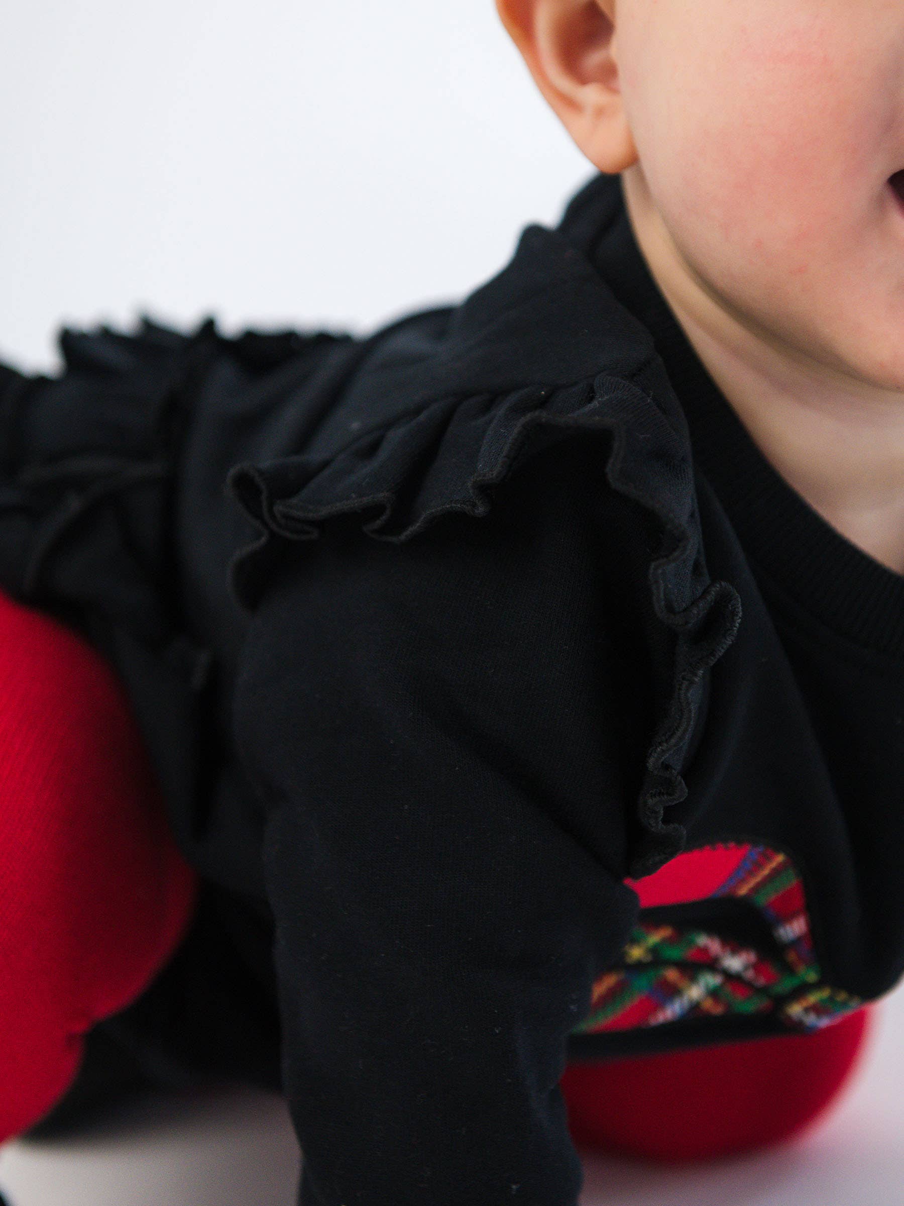 Baby Girls Nicholas Plaid Bow Black Applique Sweatshirt Bubble Romper