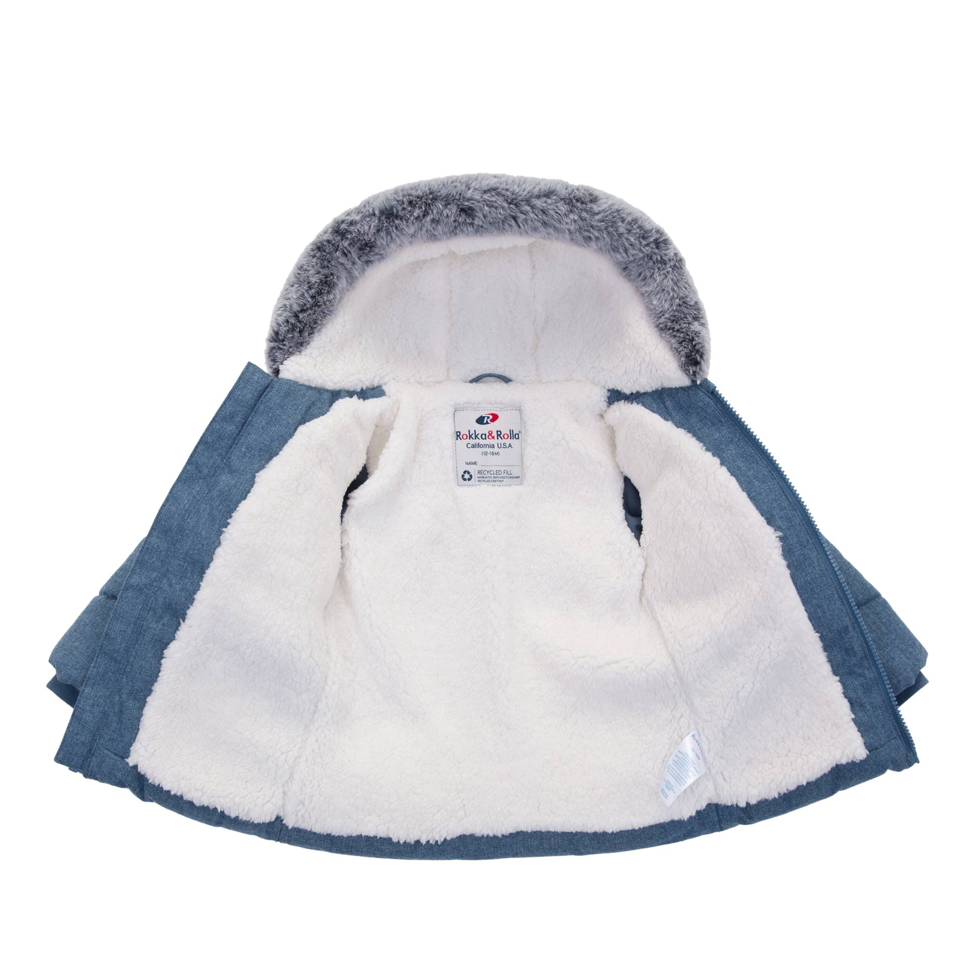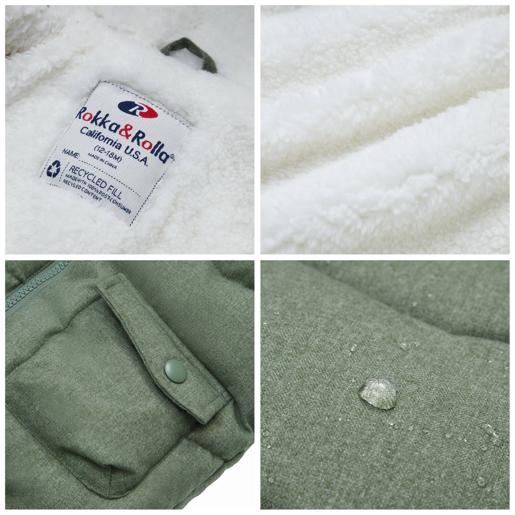 The Rokka & Rolla Baby Boys' Infant Puffer Coat Toddler Hooded Winter Jacket, available in sizes 6–24 months, is a must-have for your little one's winter wardrobe. Designed for infants and toddlers, this lightweight, hooded jacket is easy to slip on during busy mornings. With its sherpa fleece-lined interior, it keeps your baby warm, cozy, and comfortable all day long. The water-resistant shell offers reliable wind and rain protection, making it perfect for outdoor adventures. Whether it’s for a casual stroll or a photoshoot, your little boy will look adorable and feel snug in this stylish and practical winter coat. Features • Water-resistant, warm puffer for boys • Winter-ready with down-alternative • Quilted shell, fleece lining • Lightweight, pocketed, and cozy • Refer to size chart in gallery for US sizing