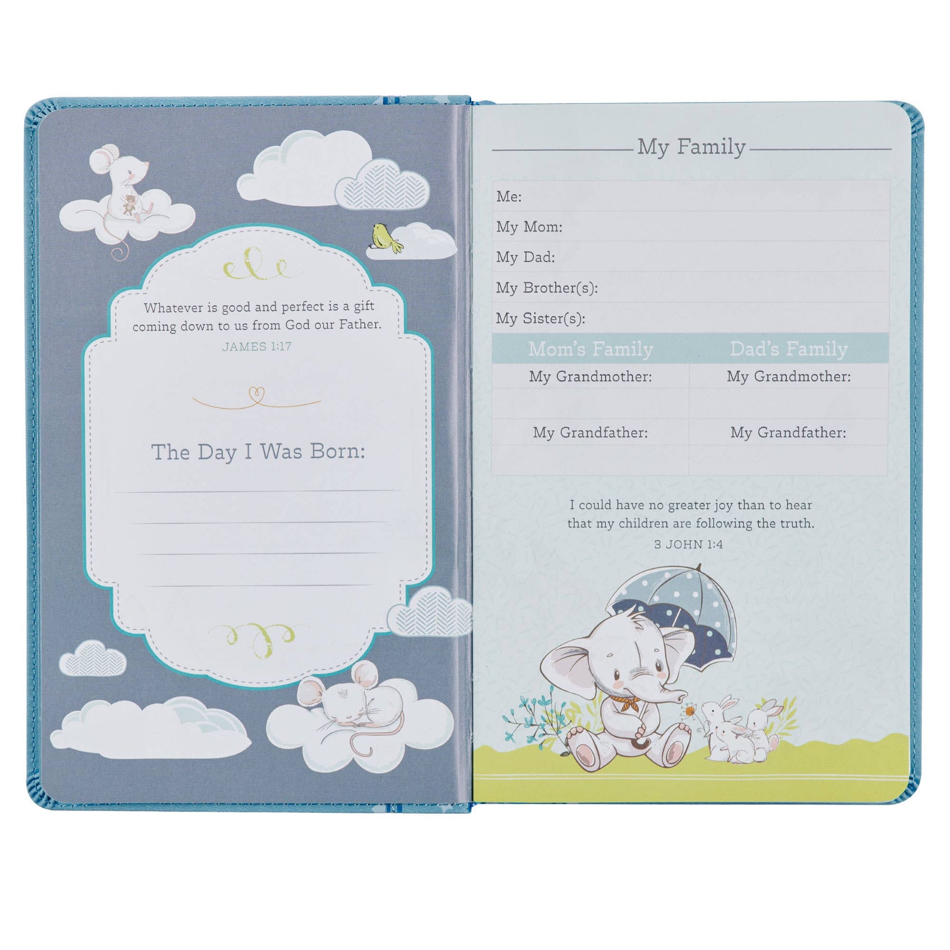 Celebrate the miracle of your baby's arrival with the Blue Faux Leather NLT Keepsake Bible for Boys. This cherished keepsake Bible will be a lasting tribute to the extraordinary journey of welcoming a new life into the world.