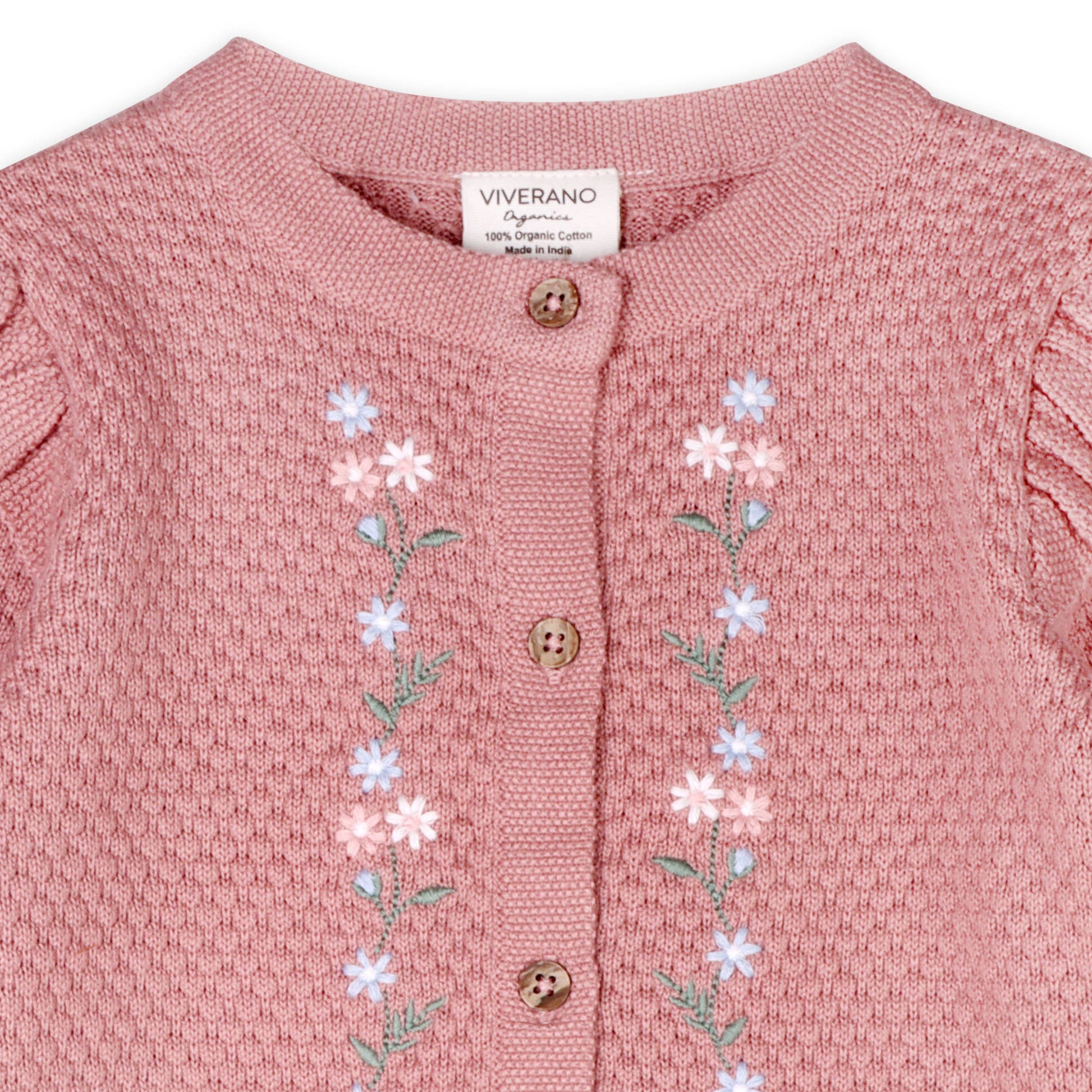 Floral Embroidered Sweater Knit Baby Ruffle Jumpsuit-Organic