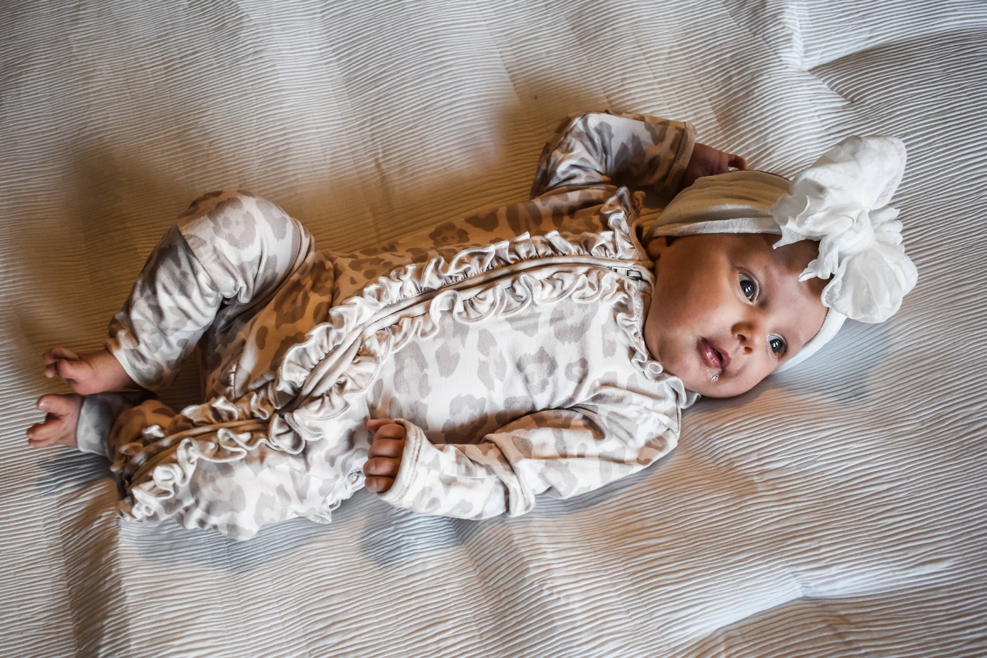 Designed with comfort in mind, Rockin Royalty zip footies are so soft you will want all designs! They are created with custom printed Viscose from Bamboo fabric made to be soft, comfortable, and stretchy for your little one while the added details make a unique stylish outfit! The multi way zipper allows for easy night-time diaper changes. The fold-over no-scratch cuffs on hands and feet prevent scratches and keep baby warm day and night. Your baby is sure to be snug, stylish, and comfy 24/7! Purchase as a great take home outfit with the coordinating Mommy Robe and swaddle blanket to match your new little arrival.
