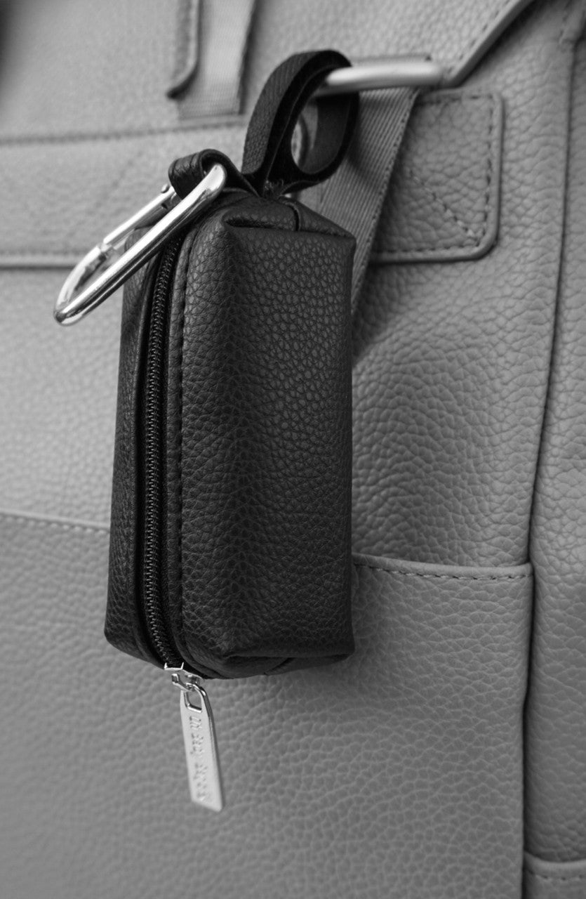 - Carabiner clip and hook-and-loop strap attaches dispenser to nearly anything