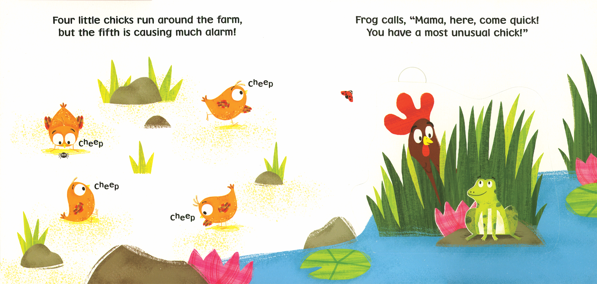 Count Mama Hen's new chicks, but … uh-oh! What's this … a duckling?